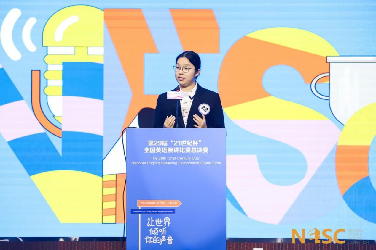 2024年10月17日-21日,beats365唯一官方网站本科生陈惜缘参加了在江苏无锡举办的第29届“21世纪杯”全国英语演讲比赛。她通过在两轮半决赛和决赛中的优异表现,最终斩获了全国一等奖(列第四名)的好成绩。