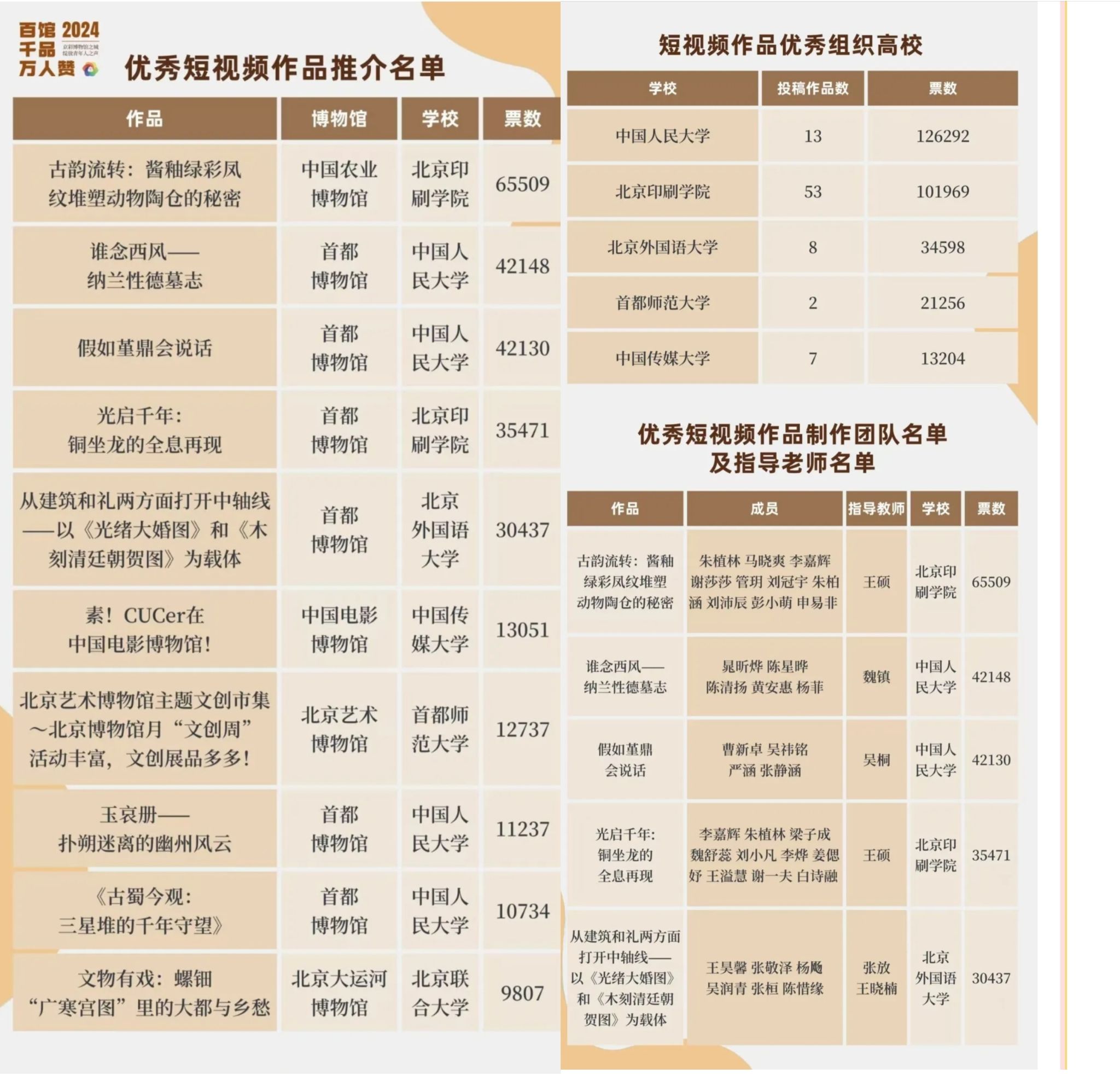 11月21日,由北京市委宣传部、市委教工委主办,北京市文物局牵头,首都博物馆及相关北京地区博物馆承办的“百馆千品万人赞”活动短视频成果正式上线。由beats365唯一官方网站“京彩--博闻译行实践团选送”,张放、王晓楠老师指导,beats365唯一官方网站员工王昊馨、张敬泽、杨飏、吴润青、张桓、陈惜缘制作的短视频《从建筑和礼两方面打开中轴线——以〈光绪大婚图〉和〈木刻清廷朝贺图〉为载体》被评为优秀短视频作品,beats365唯一官方网站被评为短视频作品优秀组织高校。