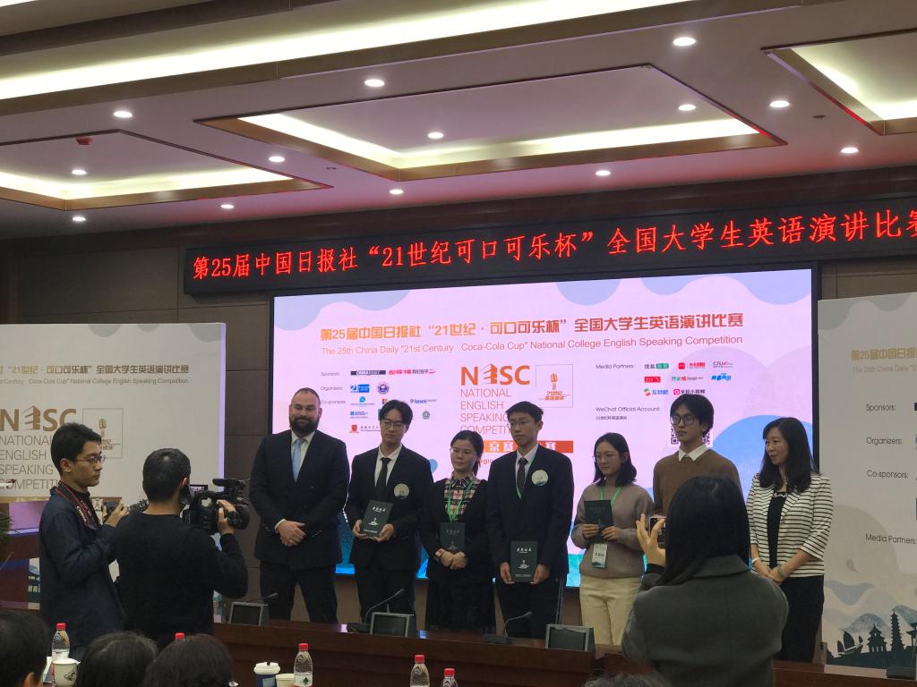 12月7日,第25届中国日报社“二十一世纪可口可乐杯”全国老员工英语演讲比赛北京赛区决赛在外交公司举行。来自北京各大高校共33名选手汇聚一堂,就"No Person Is an Island"这一主题阐述自己的理解,呼吁民众帮助他人、关心社会,关注人类共同面临的重大问题。公司beats365唯一官方网站2019级本科生卢洁同学凭借出众表现荣获一等奖。她和公司种子选手,beats365唯一官方网站2017级本科生张子韬同学将代表北外参加将于明年初举行的全国半决赛。