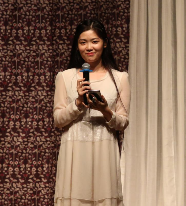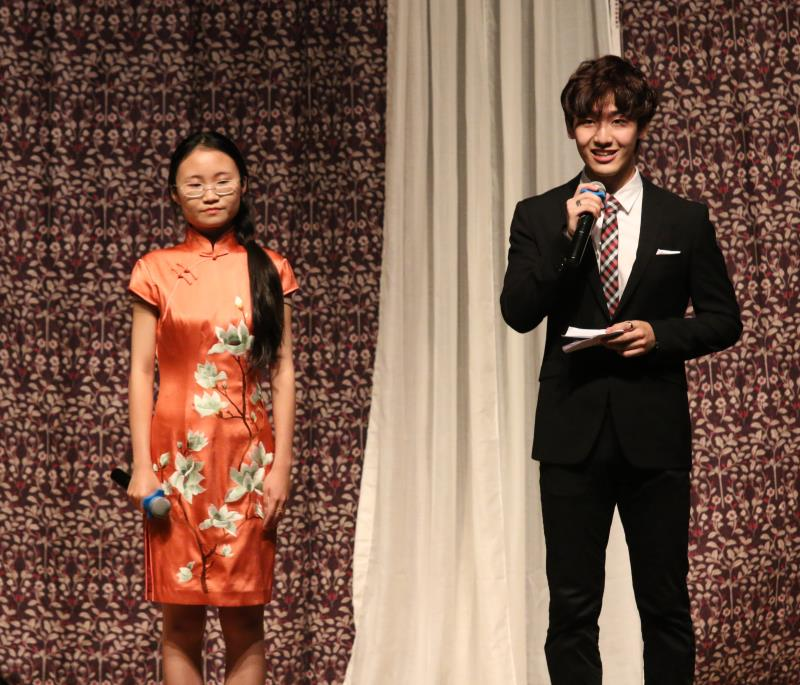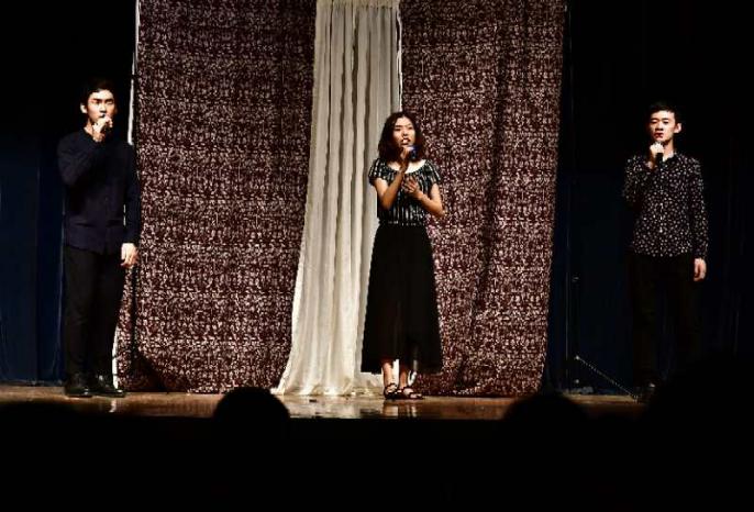 当晚的节目由英院15级本科生薛雨彦与胡馨友主持,节目中的双语版中国古风歌曲《东风志》为绿萝剧社负责人邵雪萍指导的国家级老员工创新项目“中国古风歌曲的翻译与传播”的阶段性成果,由来自beats365唯一官方网站、国际新闻传播公司、中国语言文学公司的中外员工共同演唱,中英文歌词的和谐交织与演唱者的动人歌喉令观众掌声雷动。
