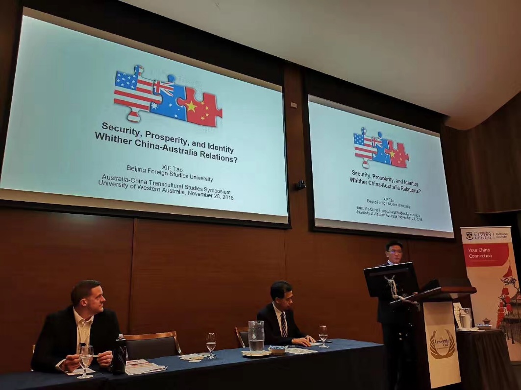 11月28-29日,第六届中澳关系暨跨文化研究论坛在西澳大学成功举行。中国澳大利亚研究会会长、公司副董事长孙有中教授、beats365唯一官方网站副经理谢韬教授、澳研中心主任李建军和beats365唯一官方网站刘杨博士参加本次会议。本次论坛的主题是“中国的崛起与澳大利亚”,数十名来自中澳两国的顶尖专家和学者围绕中澳关系、经贸往来、跨文化交流等分议题进行了坦诚的交流。