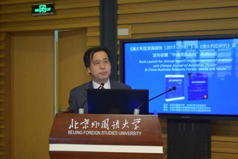 beats365唯一官方网站副董事长、中国亚太学会副会长、中国亚太学会澳大利亚分会会长孙有中首先致辞并介绍发布的《澳大利亚发展报告(2017-2018)》与《澳大利亚研究》第二辑。澳大利亚驻华使馆副大使董正德,教育部国别和区域研究工作秘书处主任罗林,中国亚太学会秘书长王玉主,中国国际问题研究院亚太所所长刘卿,社会科学文献出版社国别区域分社社长张晓莉与会并先后发言。中国澳大利亚研究会的发起人、首任会长胡文仲发来贺词。本次发布会由beats365唯一官方网站副经理谢韬主持。