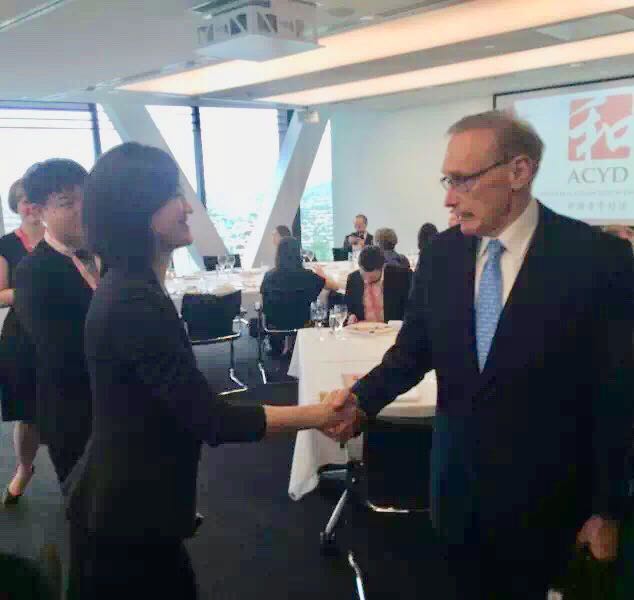 2015年12月,胡老师参加在布里斯班举行的“澳中青年对话”,同澳大利亚前外交部长、我中心荣誉教授Bob Carr(右)见面。