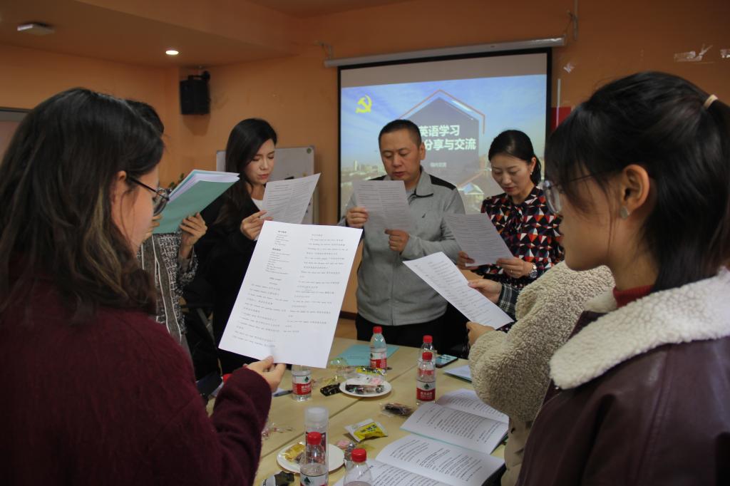 第一部分结束后,话语权回到在场的每一位党员手中,四个英语学习小组分别按“影视剧”、“公众号/APP”、“图书杂志”和“英文歌曲”的形式进行组内交流。各小组支部成员为国航机组人员分享了不同形式下的英语学习方法和资源,一些小组还通过现场演唱英语歌曲、精听美剧片段等方式,带领大家实践了这些学习方法。之后,各小组轮流分享了交流成果。英语学习方法和资源多种多样,最重要的以兴趣为出发点,找到适合自己的学习方法,坚持定期学习,并将学习内化为一种生活习惯。