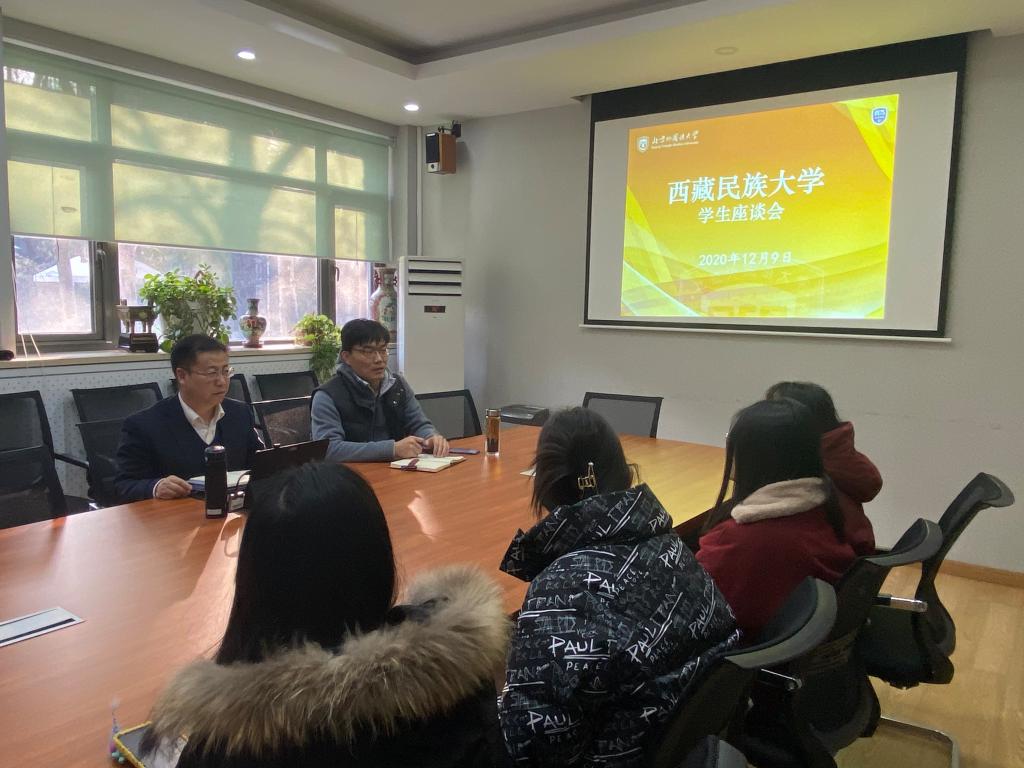 同学们也对自己选课、考试等情况进行了反馈。苏璇同学说,精读课给她最大的感受就是很注重语言和专业知识的输出,这与西藏民族大学有很大不同。一开始适应起来有些困难,但坚持下来就会发现,这对员工语言表达及英语专业综合能力的提高确实是很明显的。任美艳同学说,在初次上辩论课时,自己缺乏提前准备的经验,跟上老师的节奏后效果就好很多。其他几位同学也对自己在《佛教与中国文化》、《当代中国经济》、二外法语等课程的学习情况作了反馈。