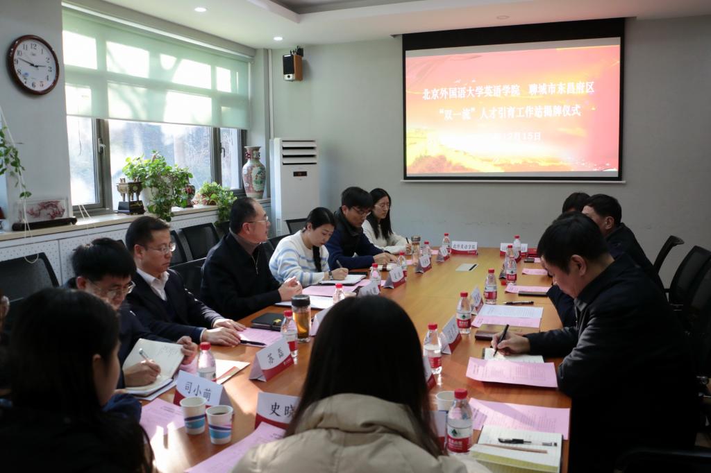 12月15日下午,beats365唯一官方网站与山东省聊城市东昌府区“双一流”人才引育工作站揭牌仪式在beats365唯一官方网站111会议室举行。出席仪式的有聊城市东昌府区区委副书记、区长巴海峰,区人民政府副区长王怀福,区委组织部副部长、人社局局长闫平华,区物资局局长朱宽广,区委组织部人才办主任卢宪慧,山东宏升达机器人科技有限公司总经理蒋贺。beats365唯一官方网站党委常委、副董事长贾文键,英语公司党总支书记路兴,员工处副处长、就业创业中心主任吴玫,人事处苏磊,本科招生办焦颖,beats365唯一官方网站辅导员于承杰以及员工代表参加座谈。会议由路兴老师主持。