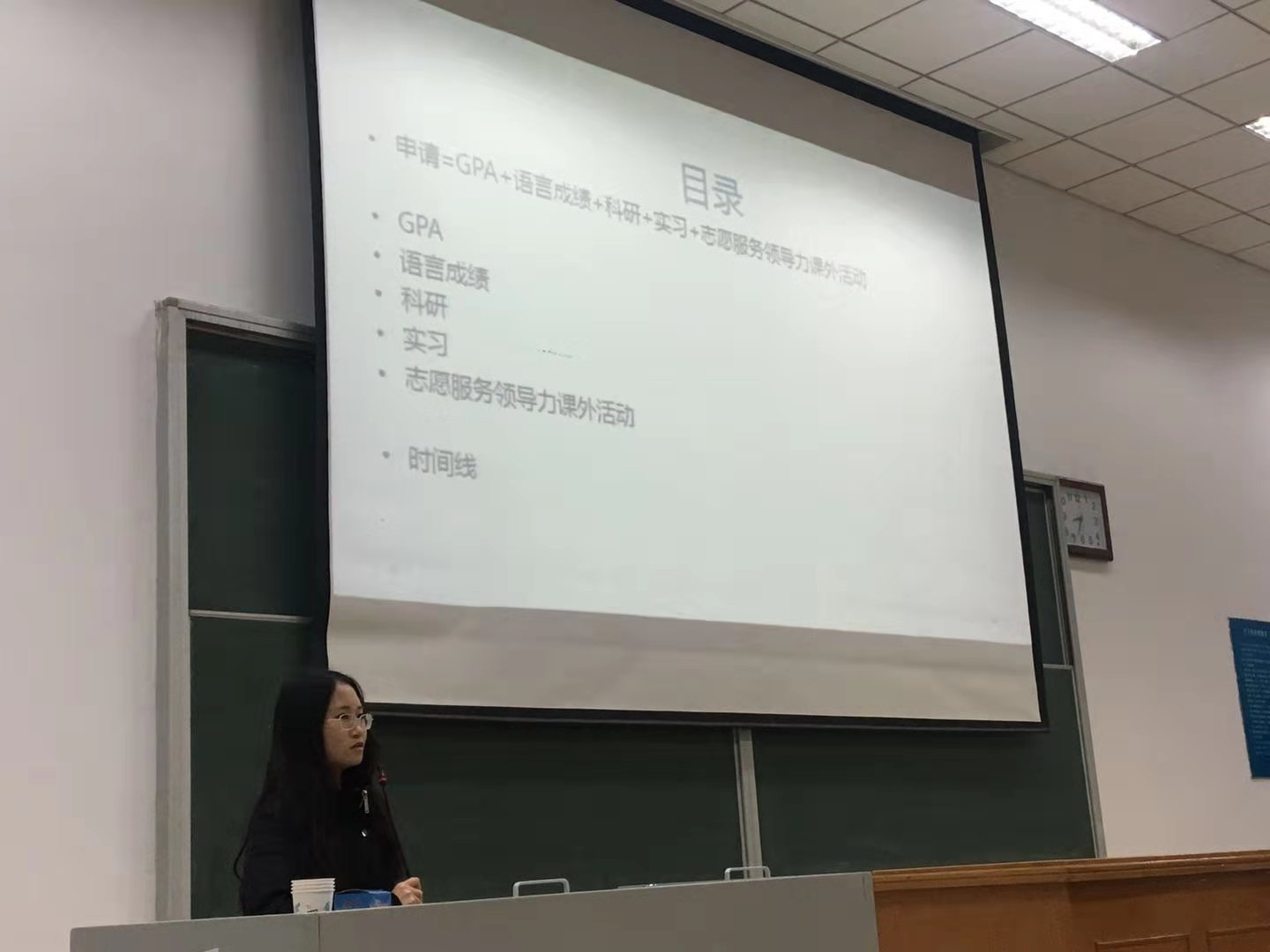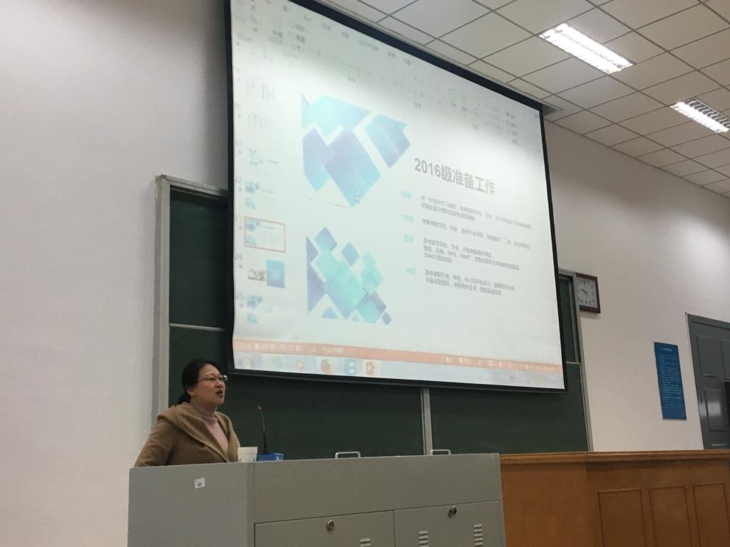 辅导员张春霞老师最后介绍2015级目前就业、留学、保研、考研情况,提醒2016级同学们要及早确定方向,及早开始准备。并继续提出“辅导员午餐”邀请,邀请对学习工作、未来规划有困惑的同学与辅导员共进午餐,为同学们答疑解惑。