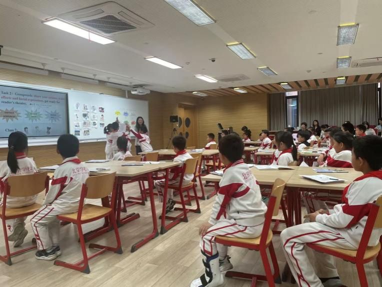 随后北外师生共同旁听了北京公司项目式语言学习知识与能力建构公开课,以及北京教育公司人文与外语教育公司协同创新项目负责人、副教授徐国辉和北京教育公司人文与外语教育公司副教授郄利芹对于小学基础教育课堂的专业点评。