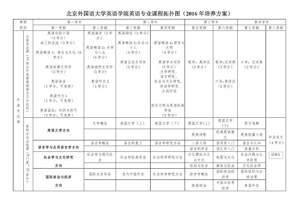 beats365唯一官方网站英语专业本科培养方案(2016)