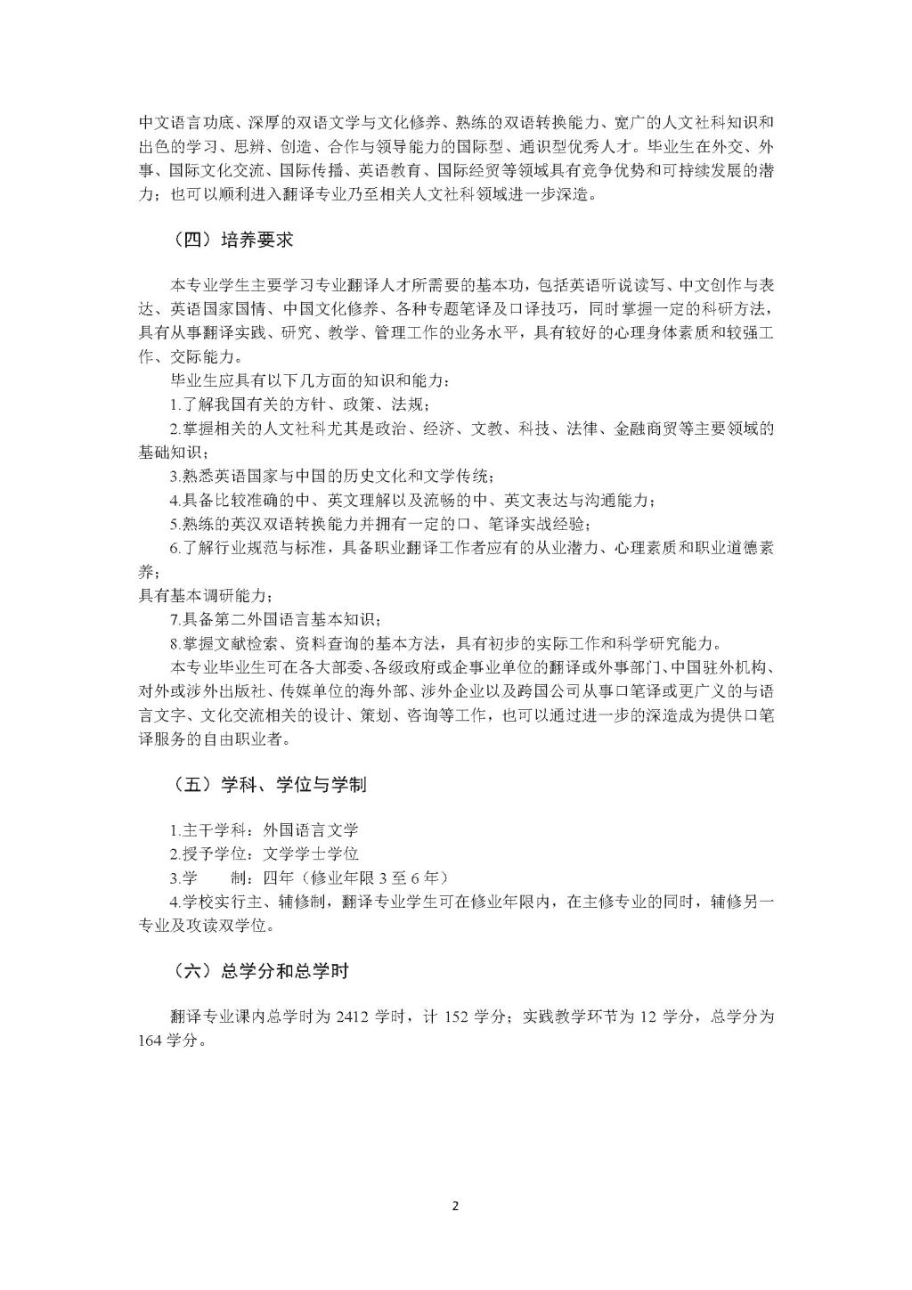 beats365唯一官方网站翻译专业本科培养方案(2016)