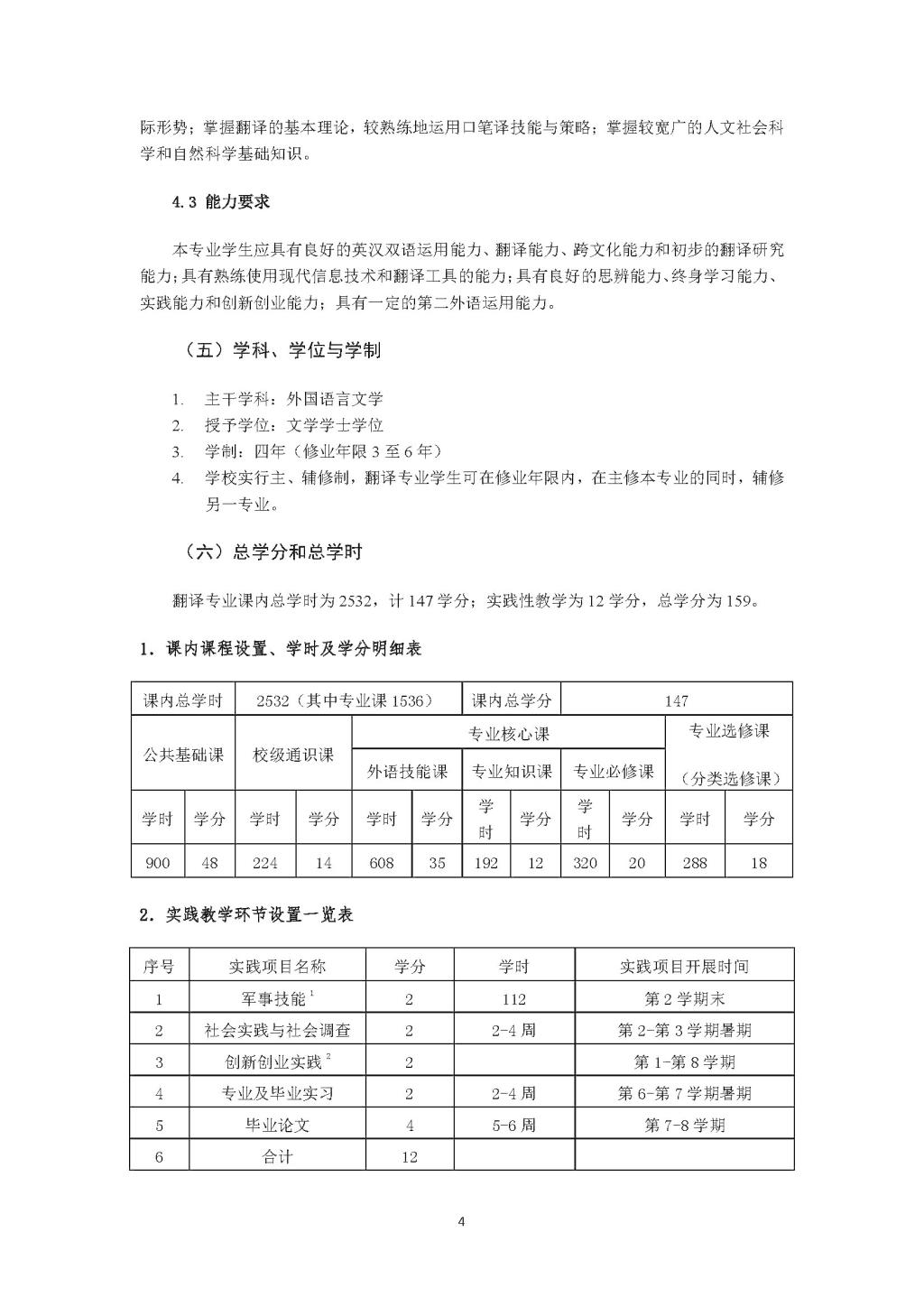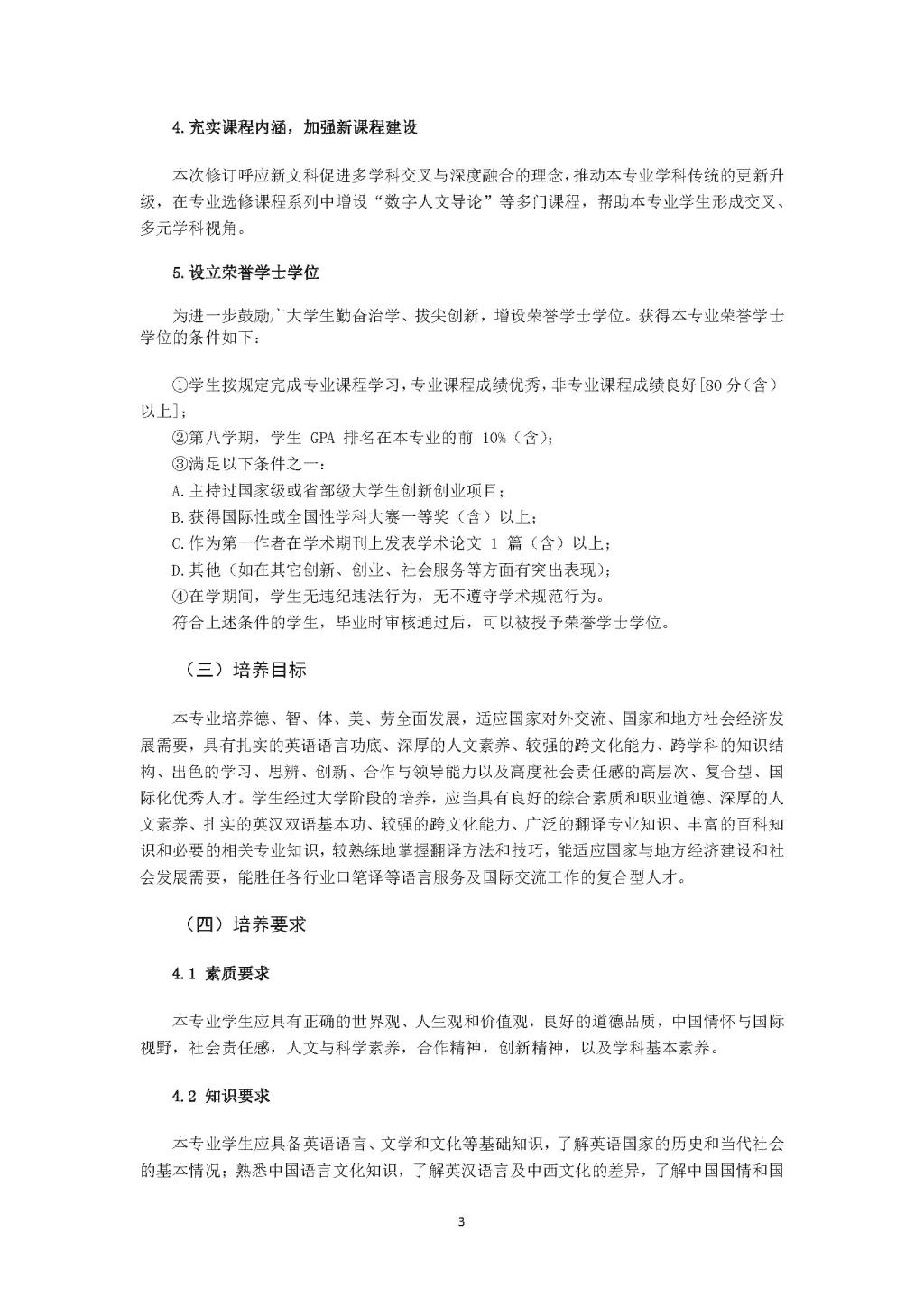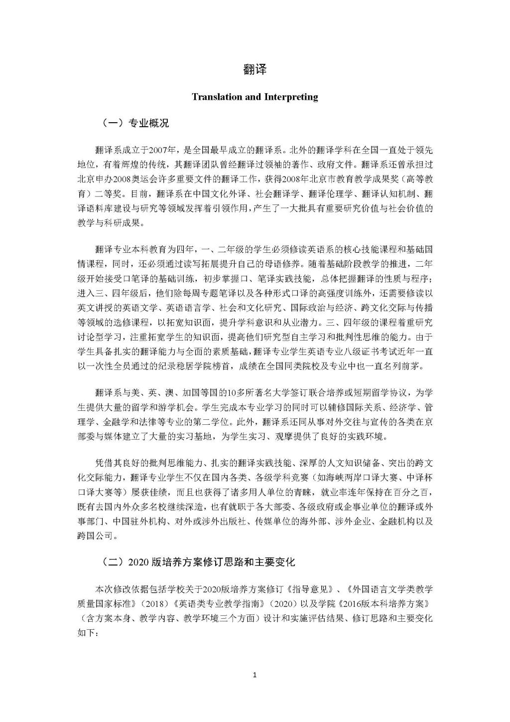 beats365唯一官方网站翻译专业本科培养方案(2020)