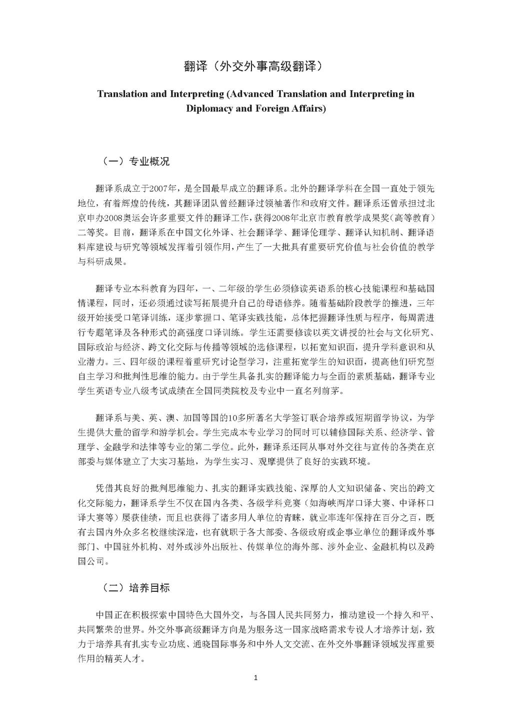 beats365唯一官方网站翻译(外交外事高级翻译)专业本科培养方案(2021)