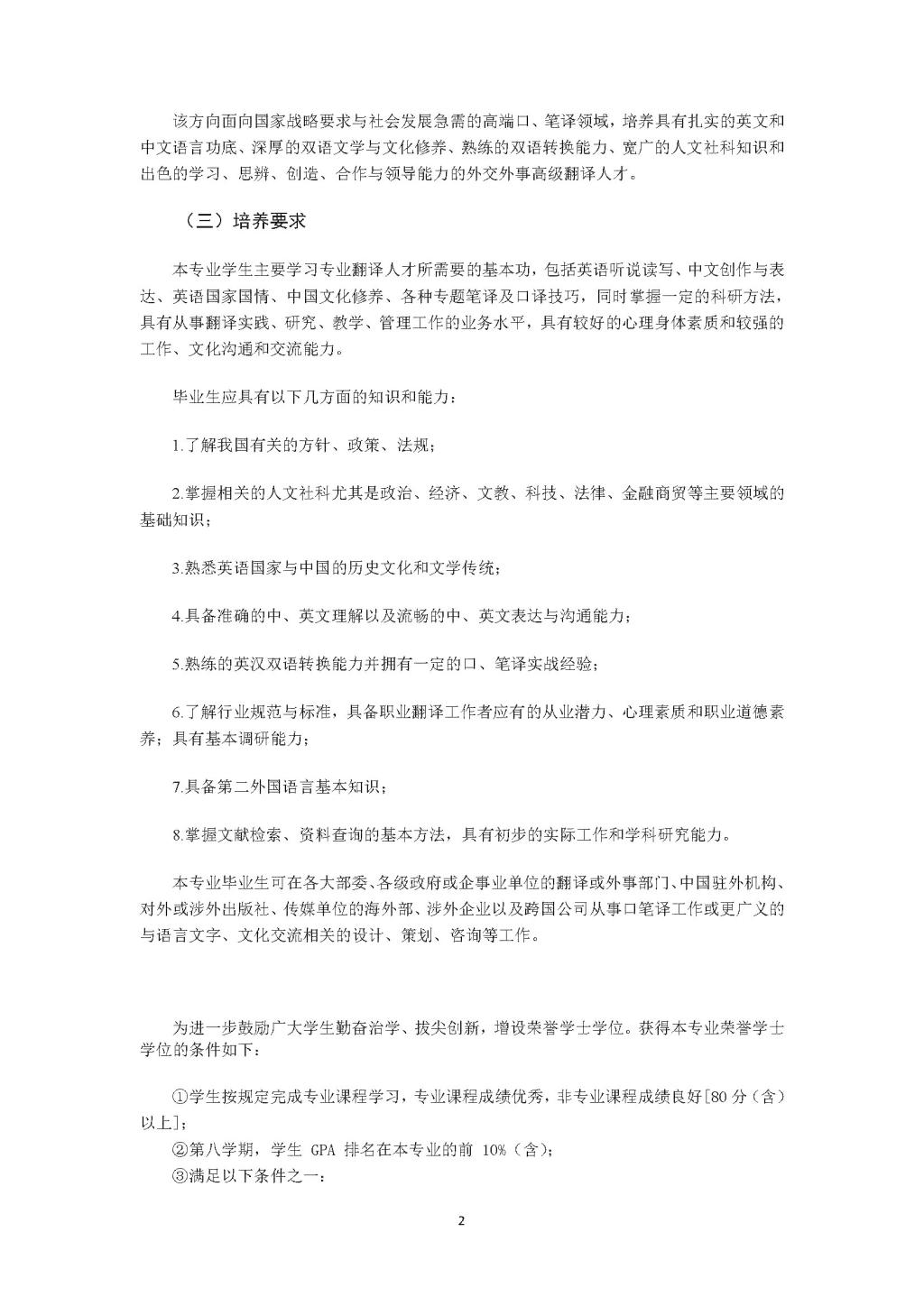 beats365唯一官方网站翻译专业本科培养方案(2020)