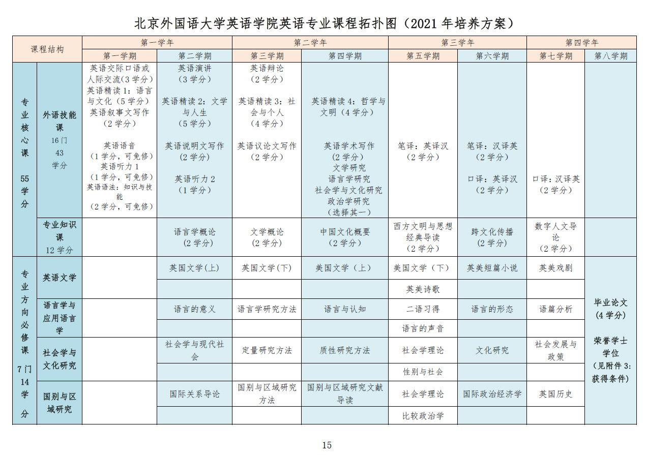 beats365唯一官方网站英语专业本科培养方案(2021)
