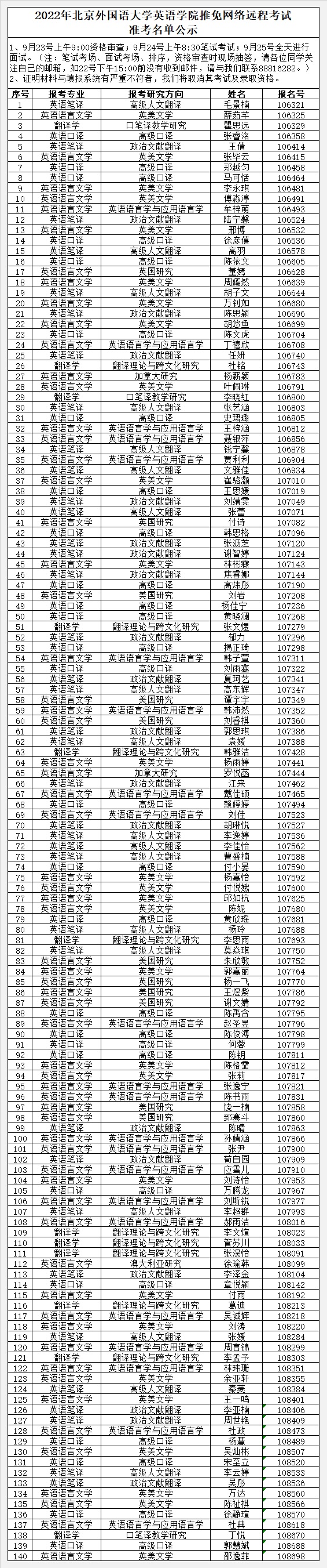 2022年推免网络远程考试准考名单公示